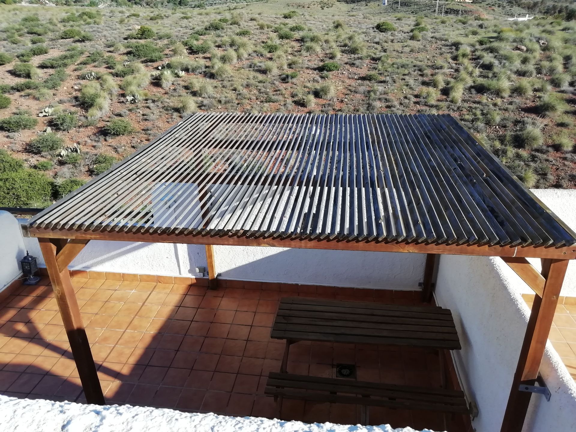 Equipada con ducha agua caliente, tumbonas, barbacoa, pila/fregadero, mesas sillas, pérgola.